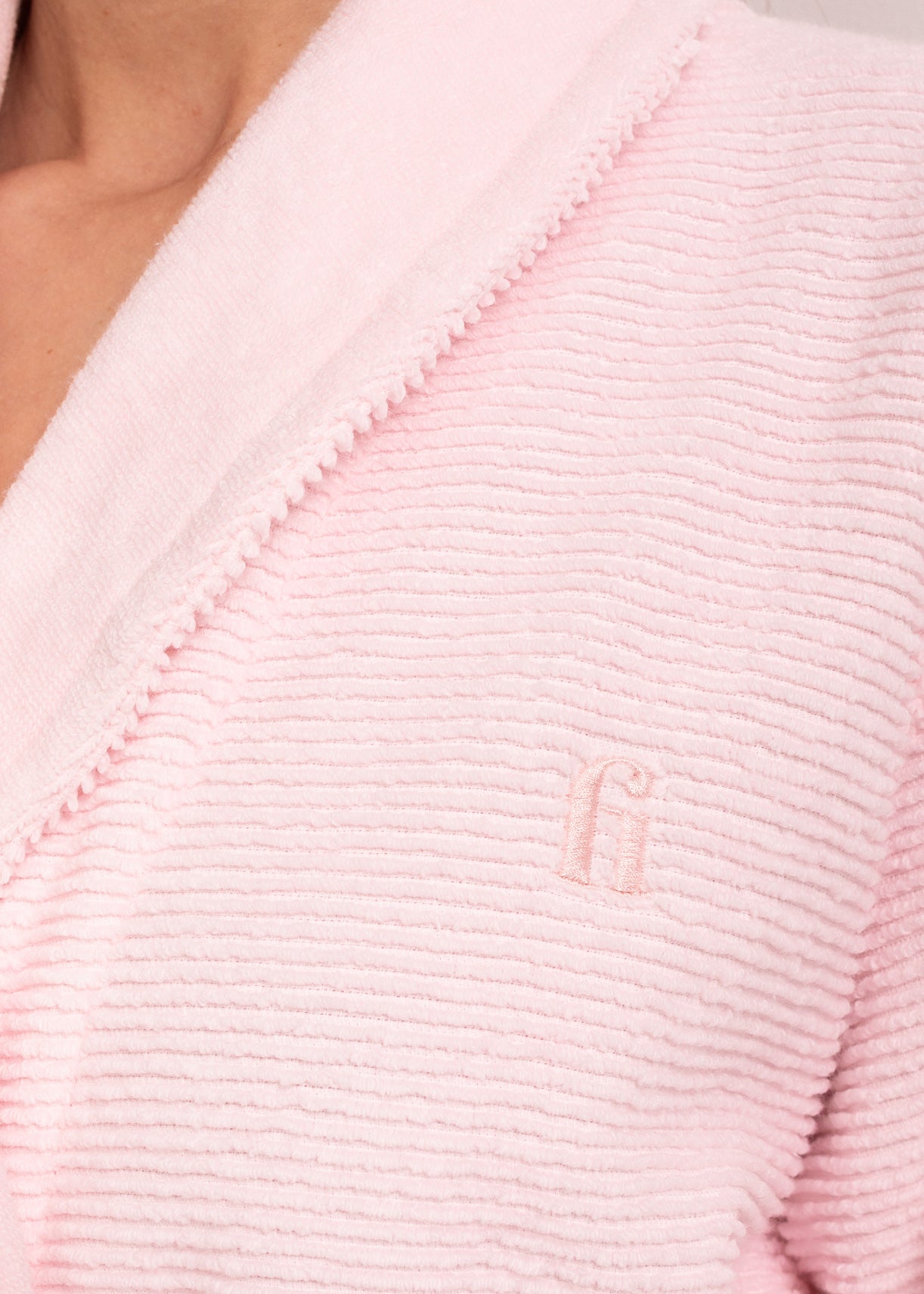 Detaliul de broderie „fi” în zona pieptului adaugă un plus de finețe și stil. Alege halat de baie damă Linoire din bumbac pentru confort premium, design elegant și relaxare deplină în fiecare zi.