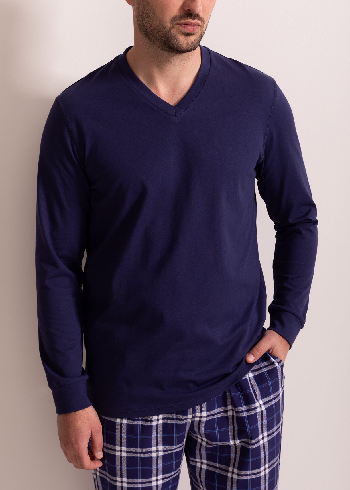 Pijama bărbați bumbac – pijama confortabilă cu mâneci lungi și pantaloni cu buzunare