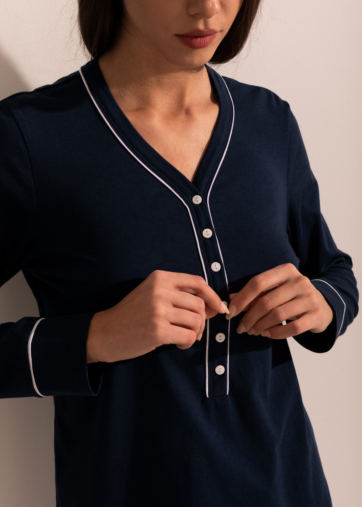 Pijama damă TENCEL™ – pijama confortabilă cu bluză cu nasturi și pantaloni lungi