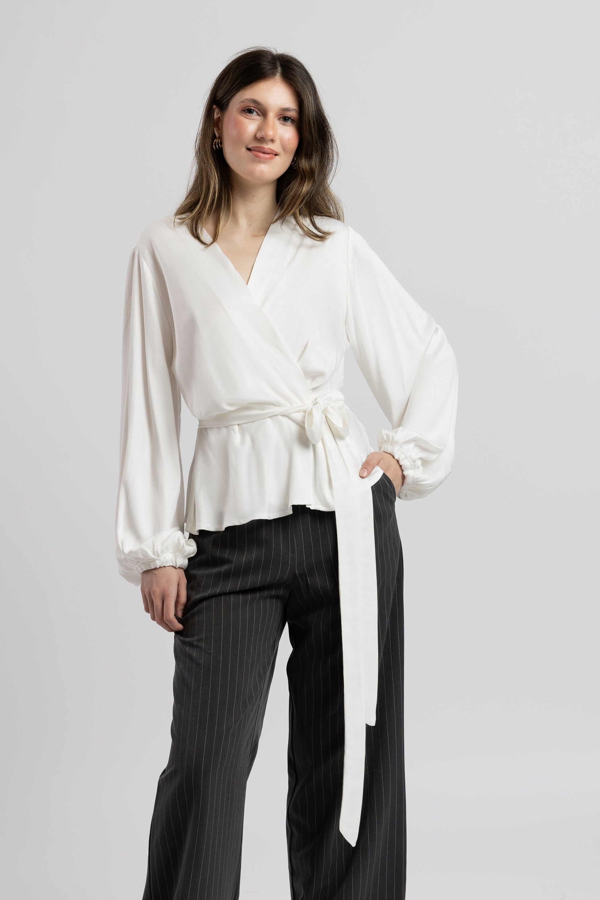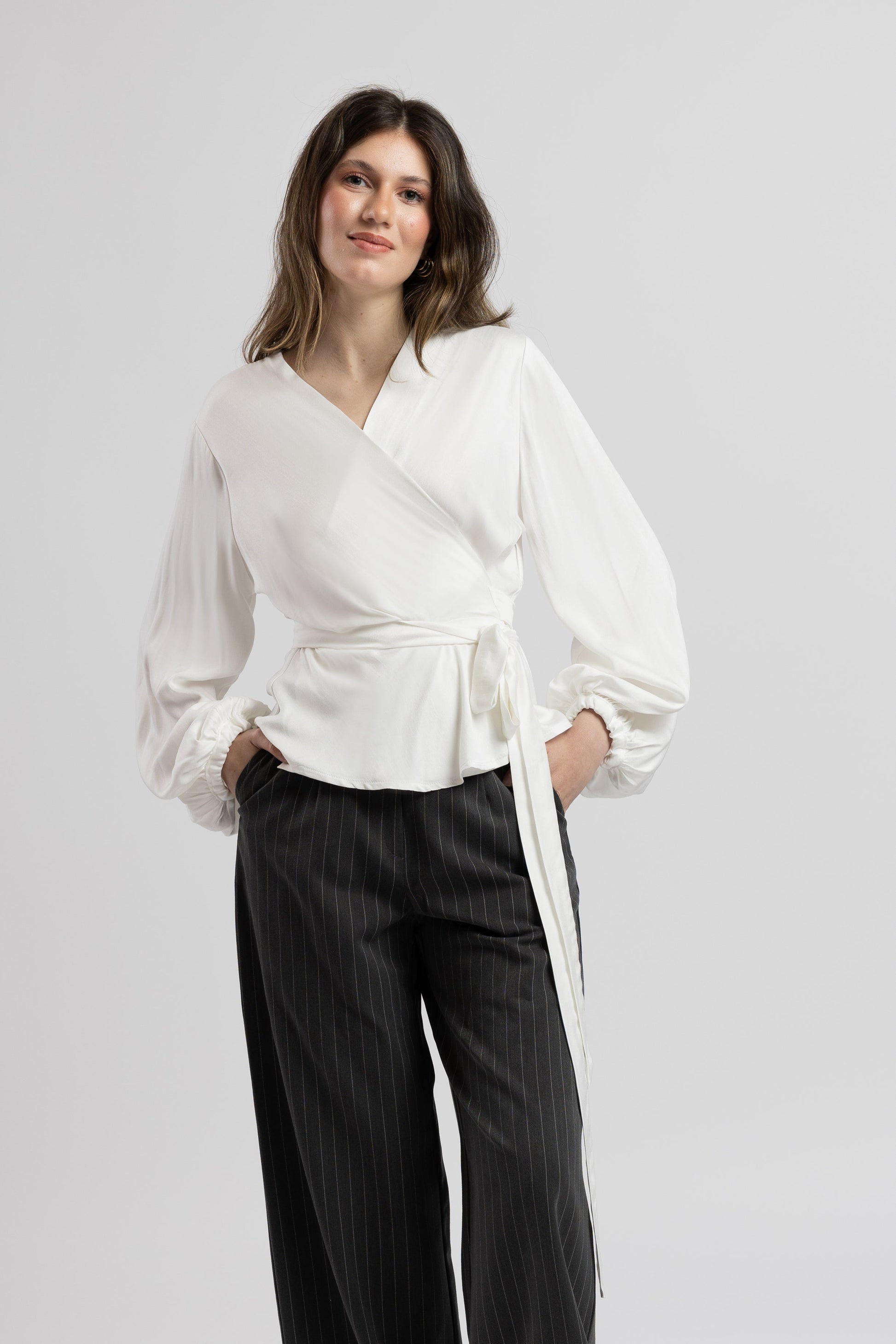 Bluza Soft Wrap este piesa ideală pentru garderoba capsulă: elegantă, versatilă și mereu actuală.