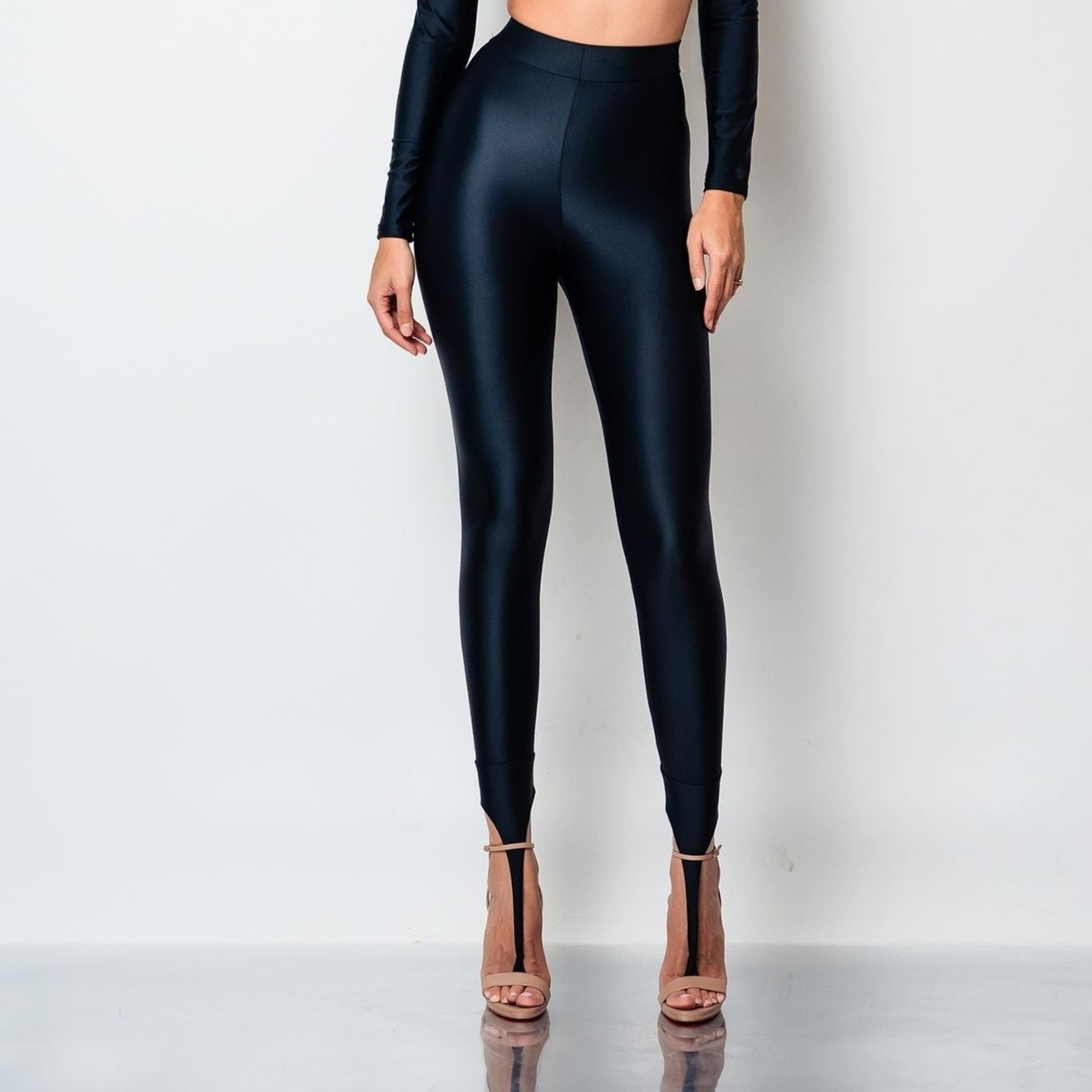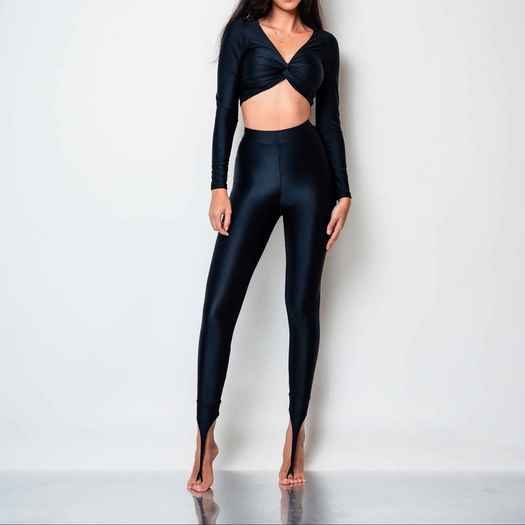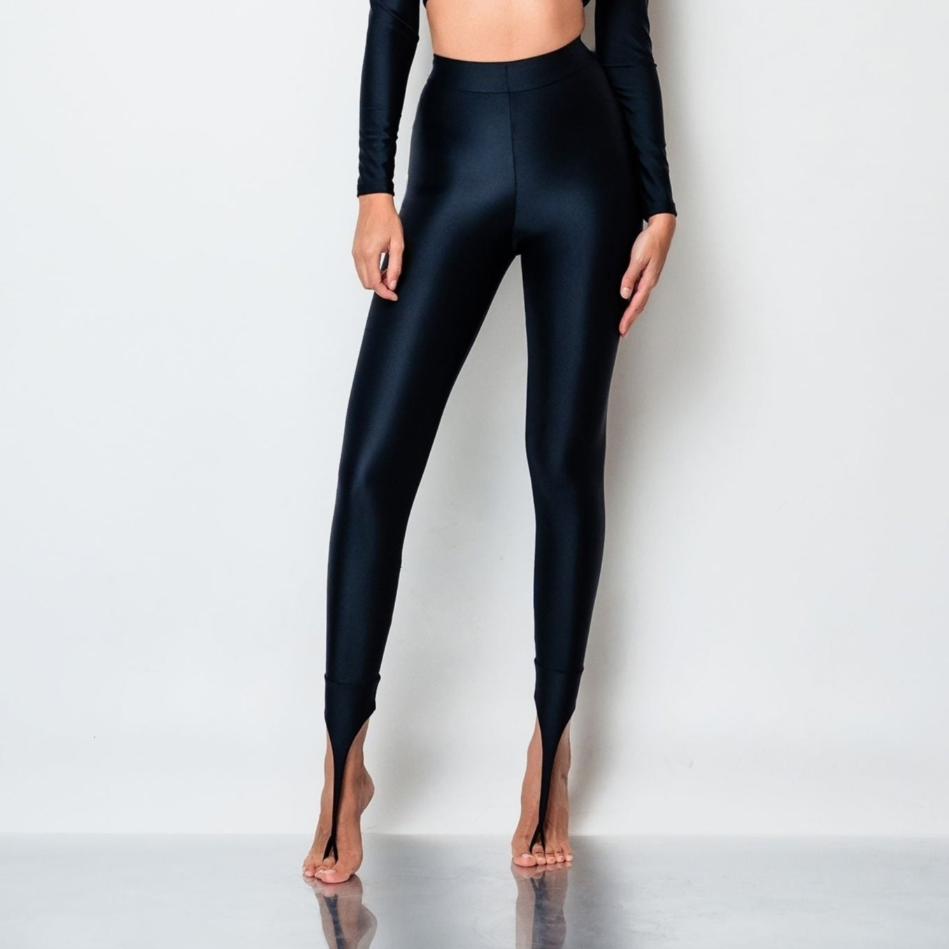 Crafted from premium Lycra with a medium-compression effect, these leggings are designed to visually slim and elongate the silhouette.