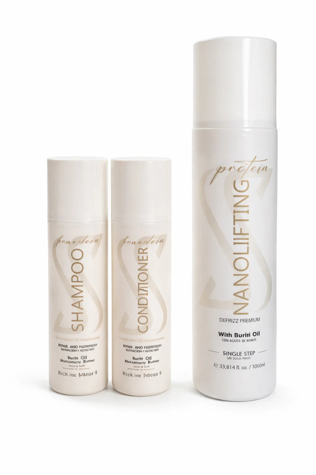 Redescoperă look-ul perfect cu Tratament pentru păr Nanoplastia 1000 ml + Șampon 300 ml + Balsam 300 ml și oferă părului tău starea de care are nevoie pentru a străluci.